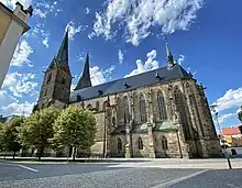 Saint Lawrence-kirken er en stor katedral fra anden halvdel af det 13. århundrede. Det blev rekonstrueret efter branden i det 16. århundrede, og det nære renæssanceklokketårn blev rejst i 1585. Kirkens nuværende udseende er resultatet af puristisk restaurering fra slutningen af det 19. århundrede. I dag bruges klokketårnets lokaler af Bygalleriet.[3]