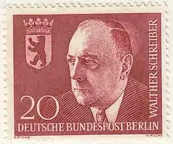![]() Walther Schreiber på et frimærke, udgivet to år efter hans død. | |