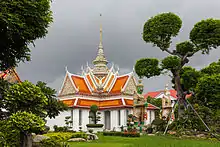 Ved siden af prangerne er ordinationssalen med et billede af Niramitr Buddha, der siges at være designet af kong Rama 2. Den forreste indgang til ordinationssalen har et loft med et spir i midten, og det er dekoreret med farvet keramik og stukarbejde med indlagt farvet porcelæn. Der er to figurer af dæmoner eller tempelvogtere foran.
