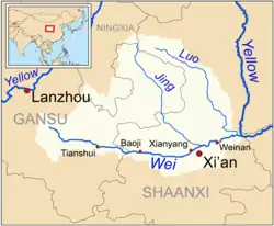 | Afvandingsområde | Provinserne Gansu og Shaanxi i Kina |