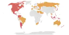 Lande med Wendy's. Røde = nuværende. Orange = tidligere.