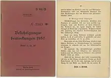 tysk hemmelig regulering "D 81/3+ Besichtigungsbemerkungen 1937" - Frhr. v. Fritsch
