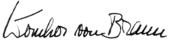 Wernher Magnus Maximilian Freiherr von Braun 23. marts 1912 Wirsitz, provinsen Posen, kongeriget Preussen, det Tyske Kejserrige (nuværende Wyrzysk, Polen) |