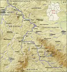 Byer beliggende ved Werra omfatter Hildburghausen, Meiningen, Wasungen, Heringen, Wanfried, Eschwege, Bad Sooden-Allendorf, Witzenhausen og Hannoversch Münden.