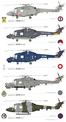 - Den britiske hærs udgave af Super Lynx'en (AH.7 med hjul i stedet for meder).