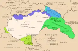 Alliancen med Nazi-Tyskland tillod Ungarn at genvinde det sydlige Tjekkoslovakiet i den Første Wienaftale i 1938 og Transkarpatien (i dag Zakarpatska oblast i Ukraine) i 1939. Hverken det eller den efterfølgende militære erobring af Transkarpatien i 1939 opfyldte dog Ungarns politiske ambitioner. Aftalerne tildelte kun en brøkdel af de områder, der var tabt ved Trianon-traktaten, og det tab, som ungarerne ærgrede sig mest over, var det i Transsylvanien, som var blevet afstået til Rumænien.
