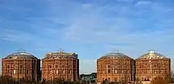 Wiener Gasometer i Wien er fire tidligere gasbeholdere, hver med en kapacitet på 90.000 m³ gas.