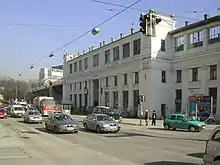 - Den overjordisk løbende hurtigsporvognslinje 64 mellem Philadelphiabrücke og Siebenhirten