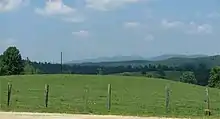 Udsigt over Yadkin-floddalen, nær Ferguson i Wilkes County. I det fjerne skimtes Blue Ridge Mountains.