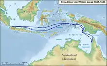 Den 18. november 1605 sejlede Duyfken fra Bantam til vestkysten af Ny Guinea. Janszoon krydsede derefter den østlige del af Arafurahavet, uden at se Torresstrædet, og ind i Carpentariabugten. Den 26. februar 1606 fik han landkending ved Pennefather River på vestkysten af Kap York-halvøen i Queensland nær den nuværende by Weipa. Det er den første registrerede europæiske landkending af det australske kontinent. Janszoon fortsatte og kortlagde omkring 320 km af kystlinjen, som han troede var en sydlig forlængelse af Ny Guinea.