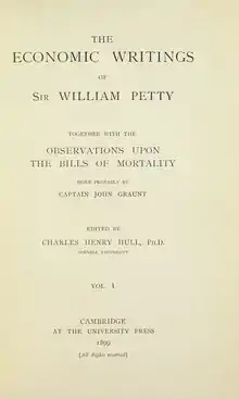 Petty udgav en forbedret redaktion af sin ven John Graunts grundlæggende skrift Natural and Political Observations upon the Bills of Mortality (1662, femte udgave 1676), hvis forfatterskab af den grund undertiden er tilskrevet Petty selv. Hans ideal var at gøre den "politiske aritmetik" til en eksakt videnskab, hans metode var den direkte iagttagelse og den nøjagtige opsummering af ordnede fakta. Petty interesserede sig først og fremmest for at finde befolkningens fordoblingsperiode, som han efter ret fantastiske beregninger anslog til 40 år. Petty prøvede også på forskellige måder at beregne Londons folkemængde, som han 1686 ansatte til 650 à 700.000 indbyggere.