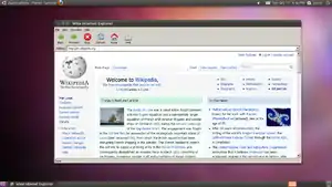 ![]() Wine Internet Explorer med forsiden af engelsk Wikipedia, kørende på Ubuntu 10.10 | |