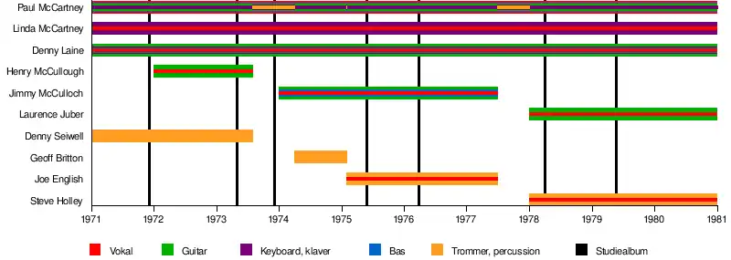 - Paul McCartney – forsanger, bas, klaver, keyboard, trommer (1971–1981)