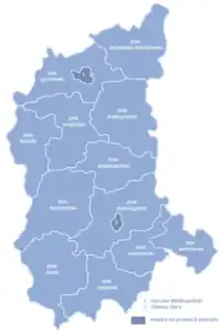 Lubusz voivodskab er inddelt 14 distrikter (powiat): 2 bydistrikter og 12 landdistrikter. Disse er underopdelt i 83 gmina.