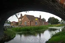 Woolsthorpes pub; The Mucky Duck set nedenunder Grantham Canal-broen.