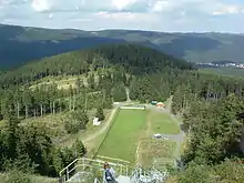Udsigten fra skihopbakken i 2006: Den træløse stribe viser, hvor 'jerntæppet' gik gennem Tyskland