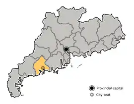 - Yangxi amt(阳西县) 1.271 km², 470.000 indbyggere; hovedbyen hedder Zhilong