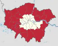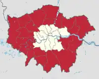 Bydelene er: Barking and Dagenham, Barnet, Bexley, Brent, Bromley, Croydon, Ealing, Enfield, Haringey, Harrow, Havering, Hillingdon, Hounslow, Kingston upon Thames, Merton, Newham, Redbridge, Richmond upon Thames, Sutton og Waltham Forest