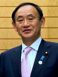 Han blev premierminister 16. september 2020 efter kort forinden at have overtaget formandsposten fra LDP fra Shinzo Abe.[1] Suga meddelte i september 2021 at han ikke ville blive søge genvalg som formand for LDP,[2] og 4. oktober 2021 blev han afløst som premierminister af LDP's nyvalgte formand Fumio Kishida.[3]