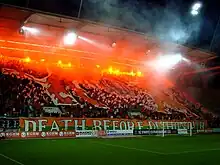 Tilskuere ved en aftenkamp på Stadion Zagłębia Lubin