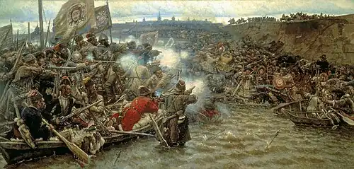 Rusland udvidede sine landområder østover og mødte relativt lille modstand. I 1581 lejede handelsfamilien Stroganov, som drev pelshandel, kosaklederen Jermak Timofeevitj, til at føre en ekspedition ind i de vestlige dele af Sibirien. Jermak slog Sibir-khanatet og erklærede områderne vest for Ob og Irtysj for russiske.
