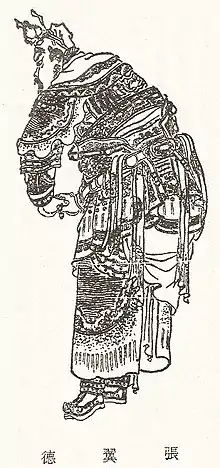 I den klassiske kinesiske historieroman Beretningen om de tre kongedømmer (三國演義) var Zhāng Fēi (張飛) (ca .168-222 e.kr.), æresnavn: Yìdé (翼德), en slagter, som senere blev officer i kongeriget Shu. Ifølge legenden var han Liu Beis og Guan Yus blodsbror.