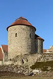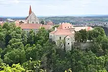 Znojmo-slottet ligger med udsigt over Thaya floddalen, i udkanten af middelalderbyen, og dateres tilbage til det 11. århundrede, grundlagt af Přemyslid-hertugerne.[8] De eneste rester af slottet, der blev brugt af Přemysl-hertugerne, er den romanske Rotunde af Sankt Katherine, hvis indre er dækket af fresker fra det 11. århundrede, der viser scener fra Bibelen og illustrerer Přemysl Plovmandens liv.[9] Rotunden er fredet som et nationalt kulturminde.