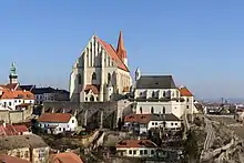 Byen kom uskadt gennem hussitterkrigene , da hussitterne ikke formåede at erobre byen. I det 15. og 16. århundrede blev netværk af borgerhuse med et system af underjordiske gange bygget som en del af befæstninger. Renæssance- og sengotiske huse er bevaret den dag i dag. Udviklingen endte med Trediveårskrigen . Znojmo blev erobret og ransaget gentagne gange. Det tog over hundrede år for byen at komme sig.[3]