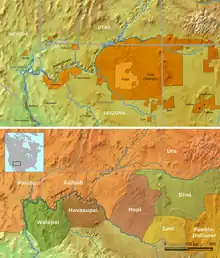 Kort over de forskellige Pueblofolk omkring Grand Canyon.