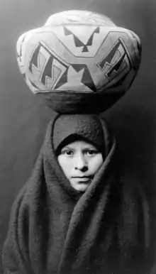 Zuni pige med krukke, fotograferet af Edward S. Curtis i 1903.