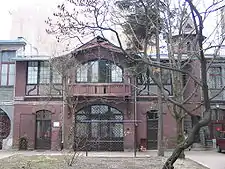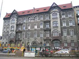 Det udbyggede murstenshus' facade fra 1912, som frem til i dag er bevaret i uforandret form, udnyttede et identisk kompositionsmønster som det første. I tillæg blev hele den nye bygnings facade rigt udsmykket med plantemotiver i form af stilke, blade, udfoldende knopper, blomster, frugter, grannåle og kogler, kastanjetræer, druer, solsikker, roser og valmuer. I facaden kontrasterer desuden den mørke mursten med den ru og grå samt glatte og hvide murpuds. De to indgangsporte og porten til gården er asymmetrisk placeret i facaden. På indgangsportenes hjørner findes basreliefmaskaroner. Helheden står i kontrast med det usædvanligt høje tag.