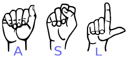 ASL er et forkortelse for American sign language, som betyder: Amerikansk tegnsprog. I øvrigt det mest udbredte tegnsprog i verden. Ligesom de fleste lærer engelsk, lærer de fleste døve ASL.[kilde mangler]