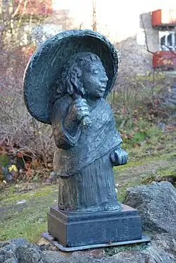 - Pige med parasoll, bronze, opstillet 1957, Vâstertorp, Stockholm, også i Skärholmen og på Spånga torv i samme by