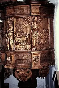 Apsis har bevaret sit halvkuppelhvælv, mens kor og skib har flade bjælkelofter. Den runde korbue er bevaret med skråkantede sokkelsten og kragbånd. Altertavlen er et snitværk i højrenæssance fra 1601, og i storfeltet er indsat et maleri fra 1857 af T. M. Jensen. Prædikestolen fra 1659 er skænket af Tim Klausen Salpetersyder, som havde anlagt et salpeterværk i området.