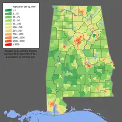 I 2012 havde Alabama et anslået befolkningstal på 4.822.023, hvilket var en stigning på 2,5 % siden 2000. I 2005 var 2,4 % af befolkningen født i udlandet, og heraf blev det anslået, at 22,2 % var illegale indvandrere. De etniske største tilhørsforhold var i 2005: Amerikanere (17,0%), engelsk-amerikanere (7,8 %), irsk-amerikanere (7,7 %), tysk-amerikanere (5,7 %) og skotsk-amerikanere (2,0 %).