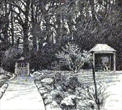En illustration af W.E.F. Britten der viser Somersby Rectory, præsteboligen, hvor Tennyson voksede op og begyndte at skrive.