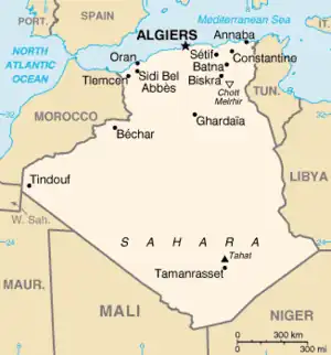 | Hovedstad og største by | Algier 36°42′N 3°13′Ø / 36.700°N 3.217°Ø |
