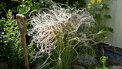 Blomsterne er samlede i et løst aks, de er uregelmæssige og bygget som græsblomster ellers. Forskellen er den, at blomsternes og senere frøenes stakke er 20-30 cm lange og sølvskinnende. Ved skiftevise udtørringer og fugtmætninger krøller disse frøhaler spiralformet sammen og borer frøet ned i jorden.
