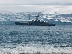Skibet Vanguardia, fra Uruguays flåde bringer forsyninger frem.