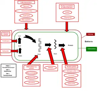 - Antibiotika, der hæmmer bakteriens cellevægsyntese.