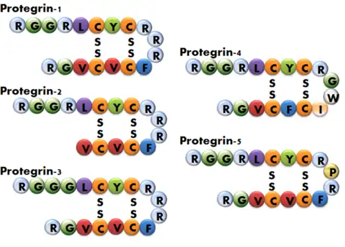 - ↑ Reddy KV, Yedery RD, Aranha C (2004). "Antimicrobial peptides: premises and promises". International Journal of Antimicrobial Agents. 24 (6): 536-547. doi:10.1016/j.ijantimicag.2004.09.005. PMID 15555874.