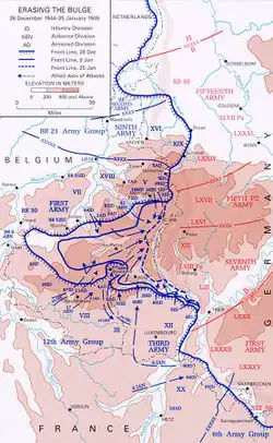 Pattons 3. Arme kæmpede for at undsætte Bastogne. Kl. 16.50 den 26. december nåede de forreste enheder af 37. kampvognsbataljon i 4. amerikanske panserdivision til Bastogne og afsluttede belejringen.
