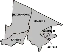 Regionen Arusha er inddelt i fem distrikter: Ngorogoro, Monduli, Karatu, Arumeru og Arusha.