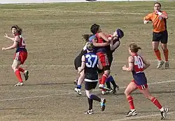 Løb med bolden: En spiller der har bolden, må bevæge sig op til 15 meter med bolden, såfremt denne ikke tackles. Efter 15 meter skal spilleren "bounce" bolden ved at føre bolden ned til jorden. Derefter må spilleren bevæge sig 15 meter videre med bolden.