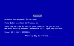 Når fejlen opstår i Windows, er det tit en kritisk fejl i operativsystemet, og fænomenet er mest kendt fra Windows 95, 98 og Me.