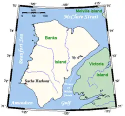 - ↑ James Marsh. "Banks Island". Thecanadianencyclopedia.com. Arkiveret fra originalen 5. november 2011. Hentet 2012-05-29.