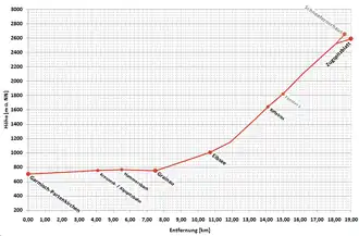 Den første strækning på 7,5 km frem til Grainau kører toget som et ordinært togsæt. De første 3 km af denne strækning har banen spor til fælles med en anden smalsporsbane, Ausserfernbahn, bygget i 1913. Ved Grainau begynder bjergkørslen med de store stigninger. Her skifter lokomotivet over til tandhjulsdrift på den resterende 11,5 km strækning til toppen.