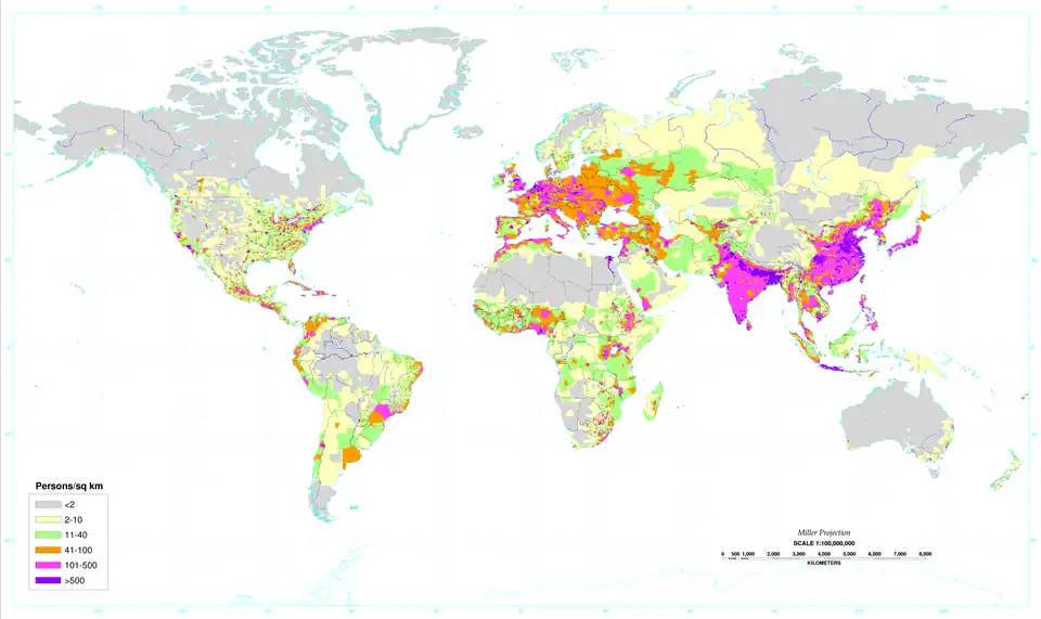 - ↑ således anvendte Aage Aagesen (1961), s. 13 følgende klasser: under 20 indbyggere pr. km², 20-40, 40-60, 60-80, 80-100, 100-200 og over 200 indbyggere pr. km²