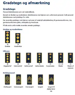 - ↑ Beredskabsstyrelsen (juli 2018). Uniformsreglement (PDF). Birkerød: Beredskabsstyrelsen. s. 7 & 8.