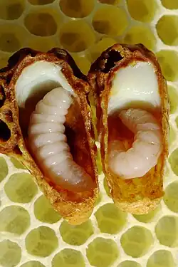 - ↑ Jung-Hoffmann, L (1966). "Die Determination von Königin und Arbeiterin der Honigbiene". Z Bienenforsch. 8: 296-322.